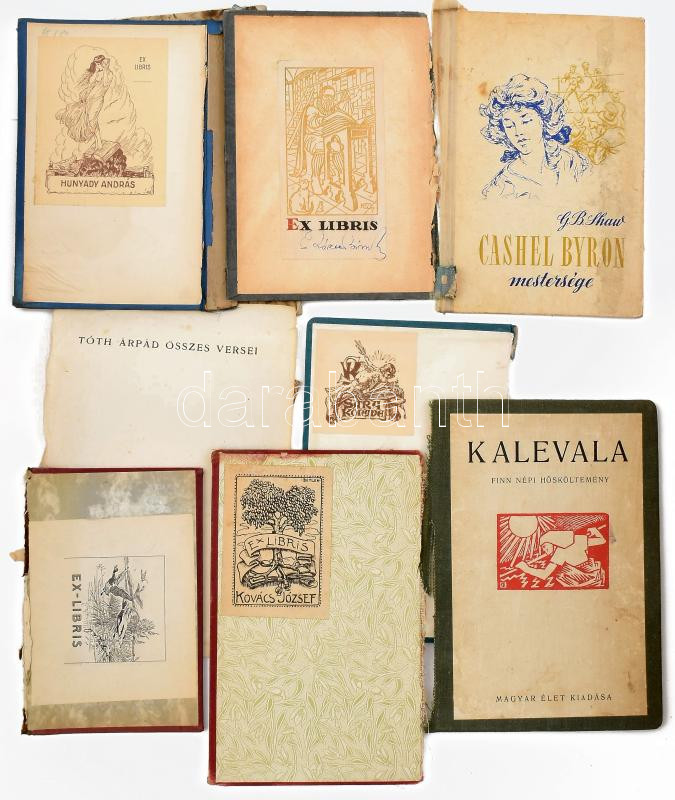 Beschreibung: 12 db vegyes ex libris, könyvborítókon, címlapokon