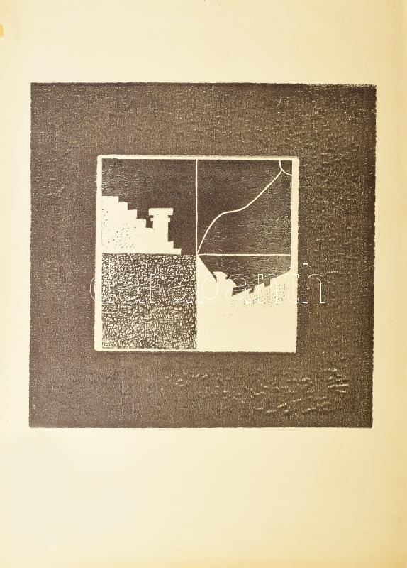 Beschreibung: Somlai Vilma (1938-2007): Kompozíció. Linómetszet, papír. Hátoldalán pecséttel jelzett, 37×37 cm