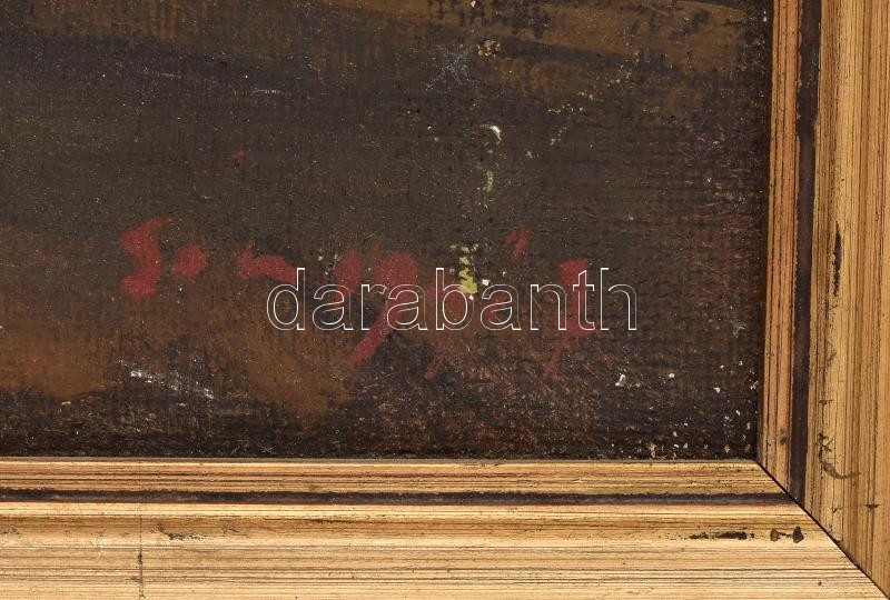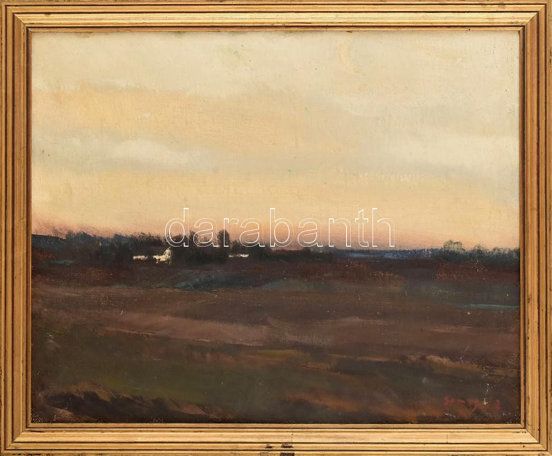 Beschreibung: Somogyi János (angyalföldi) (1928-2010): Alföld. Olajtempera, farost, jelzett. Hátoldalán autográf felirattal. Dekoratív fakeretben. 40×50 cm