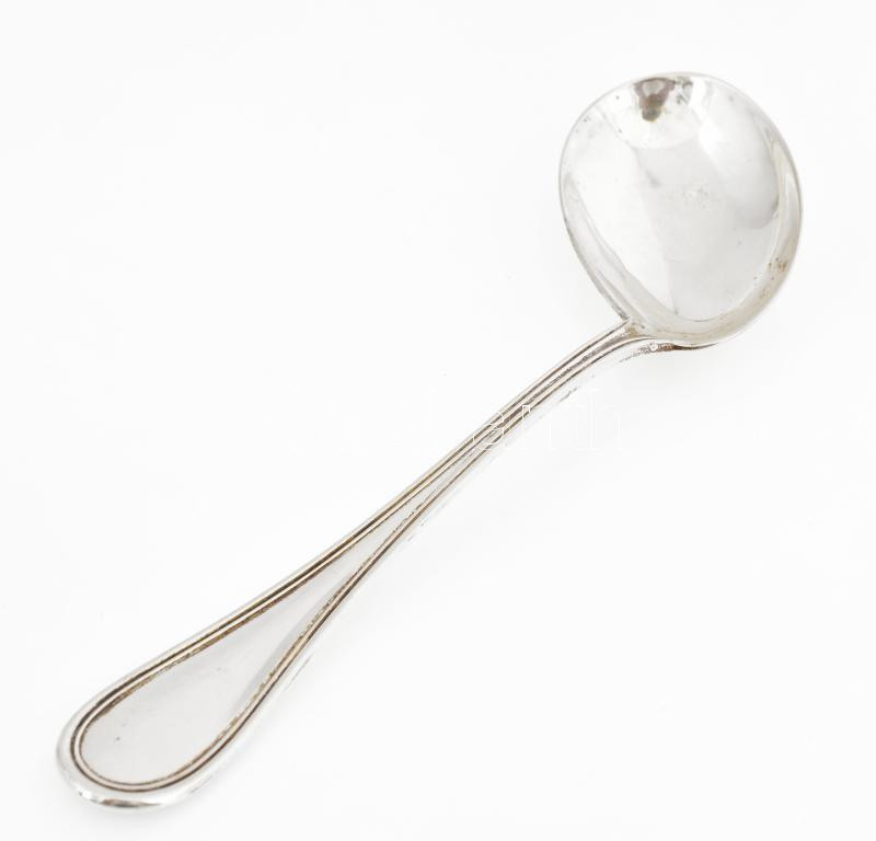Ezüst(Ag) gyereketető kanál, jelzett, h: 12,5 cm, nettó: 23,4 g https://www.darabanth.com/de/448-Fernauktion/448.0/Juwellen-und-Kunstobjekte-aus-Edelmetall/Juwellen-und-Kunstobjekte-aus-Edelmetall~2000025/EzustAg-gyereketeto-kanal-jelzett-h-12-5-cm-netto-23-4-g~II2936868