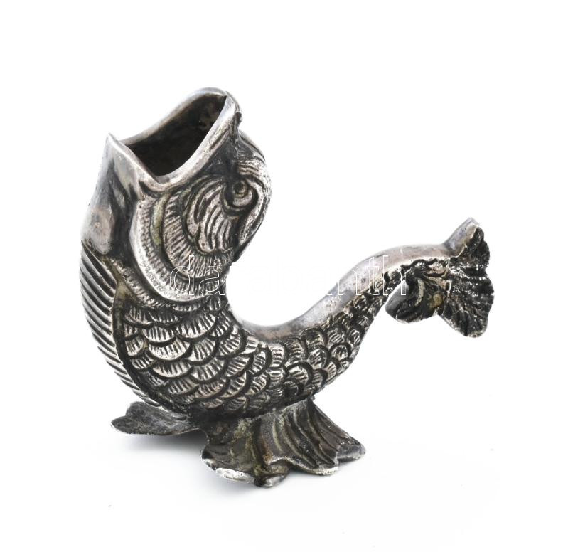 Antik hal alakú ezüstözött fém ibolyaváza, jelzéssel, minimális kopott... https://www.darabanth.com/de/448-Fernauktion/448.0/Kunst-Dokumente-andere-Sammelgebiete/Antik~1000008/Antik-hal-alaku-ezustozott-fem-ibolyavaza-jelzessel-minimalis-kopottsaggal-m-7-cm~II2968766