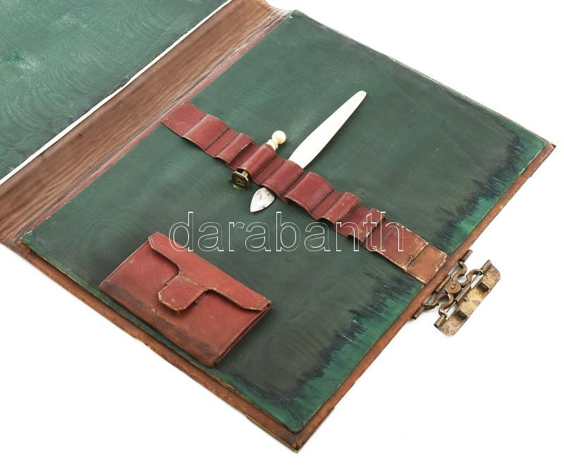 Írómappa. XIX: sz. francia. Bőr, réz, csont. Hiányos csont készlettel.... https://www.darabanth.com/de/448-Fernauktion/448.0/Kunst-Dokumente-andere-Sammelgebiete/Antik~1000008/Iromappa-XIX-sz-francia-Bor-rez-csont-Hianyos-csont-keszlettel-30x25-cm~II2972795