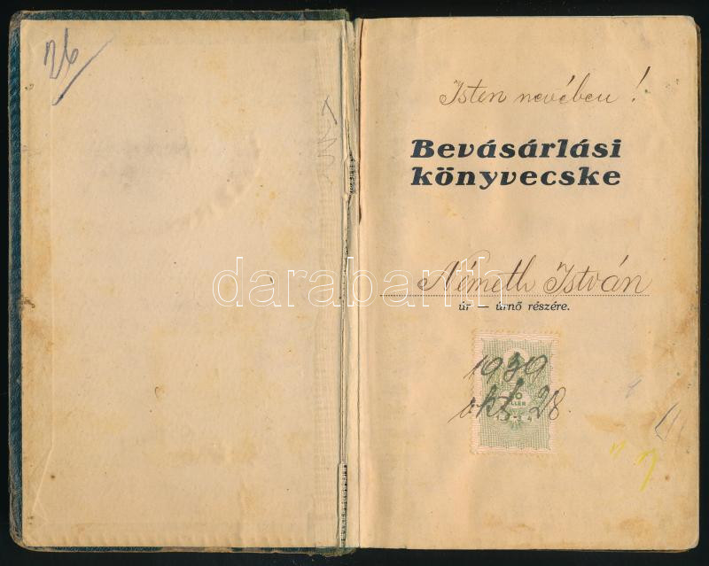 1939 Bevásárlási könyvecske kb 100 beírt oldallal https://www.darabanth.com/de/448-Fernauktion/448.0/Kunst-Dokumente-andere-Sammelgebiete/Dokument~1000031/1939-Bevasarlasi-konyvecske-kb-100-beirt-oldallal~II2972046