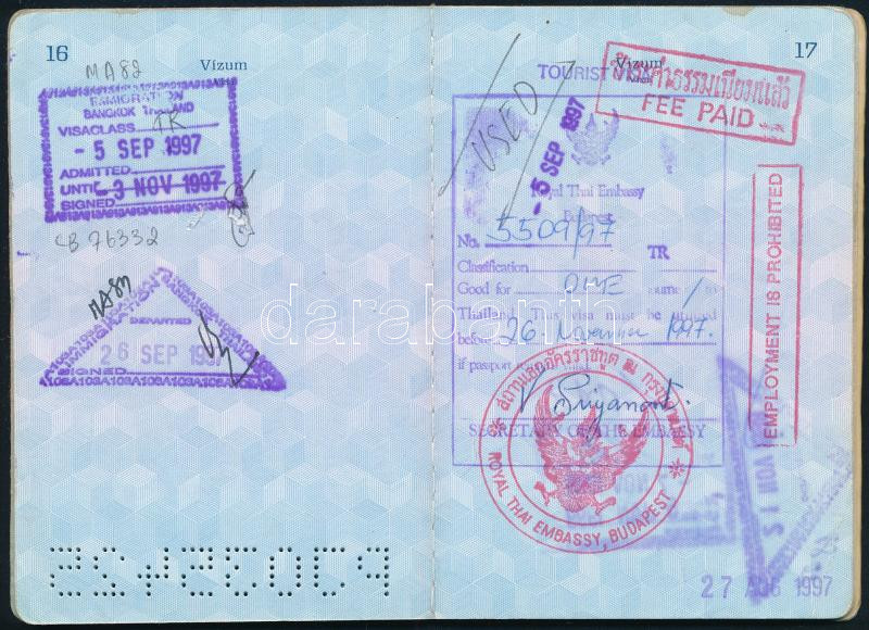 1994 Magyar Köztársaság által kiállított, fényképes útlevél, thai és g... https://www.darabanth.com/de/448-Fernauktion/448.0/Kunst-Dokumente-andere-Sammelgebiete/Dokument~1000031/1994-Magyar-Koztarsasag-altal-kiallitott-fenykepes-utlevel-thai-es-gorog-vizumokkal~II2972351