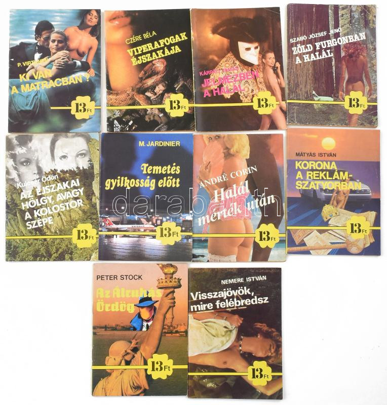 Beschreibung: 10 Db 13 Ft.-os Krimi különböző íróktól, belföldi és külföldi egyaránt 1987-től 1990-ig.