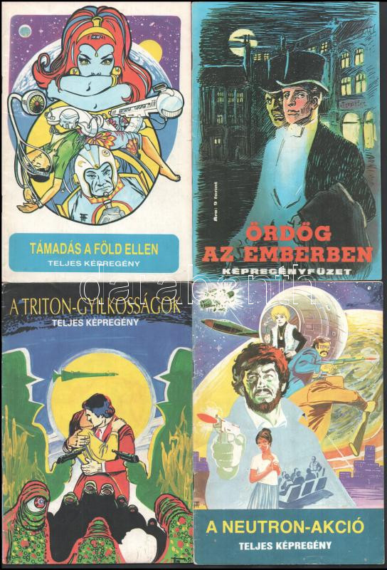 cca 1980 8 db képregény filmekről: Ben Hur, Beverly HIlls-i zsaru, Kobra, Veszélyes őrjárat, Pergamen rejtély, Neutron vakáció, Triton gyilkosságok, Ördög az emberben, Támadás a Föld ellen, Némelyikben több darab Mind jó állapotban, de a rejtvények megfejtve
