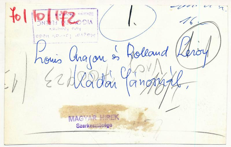 1970 Louis Aragon és Roland Leroy francia kommunisták Kádár Jánossal, ... https://www.darabanth.com/de/448-Fernauktion/448.0/Kunst-Dokumente-andere-Sammelgebiete/Foto~2000027/1970-Louis-Aragon-es-Roland-Leroy-francia-kommunistak-Kadar-Janossal-sajtofoto-a-hatoldalo~II2938845