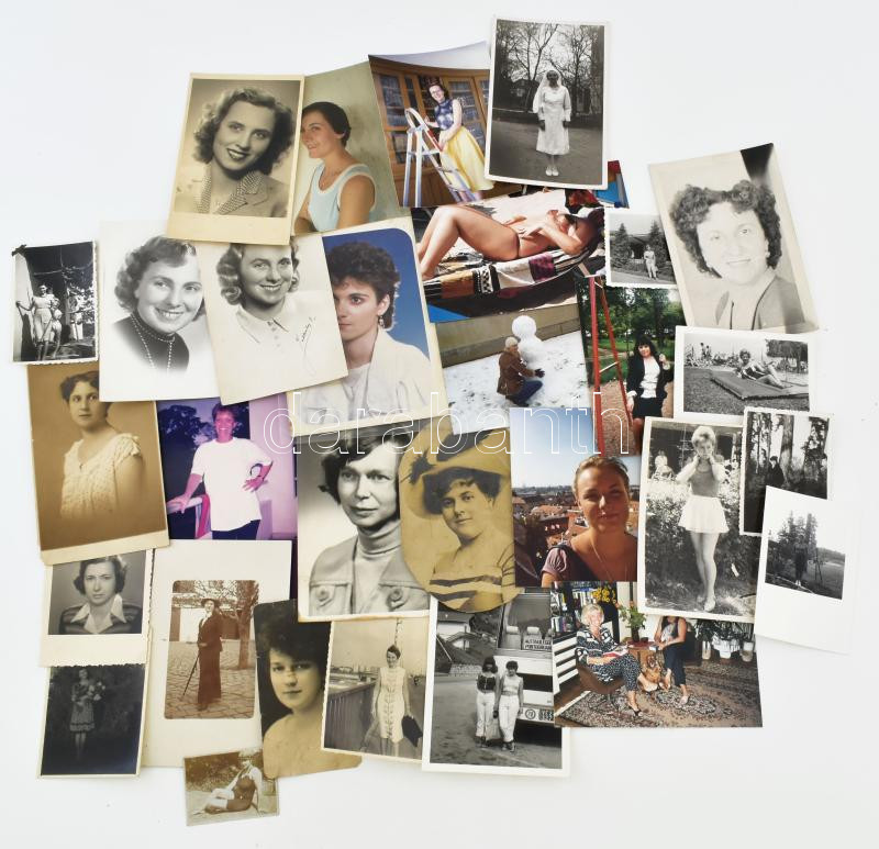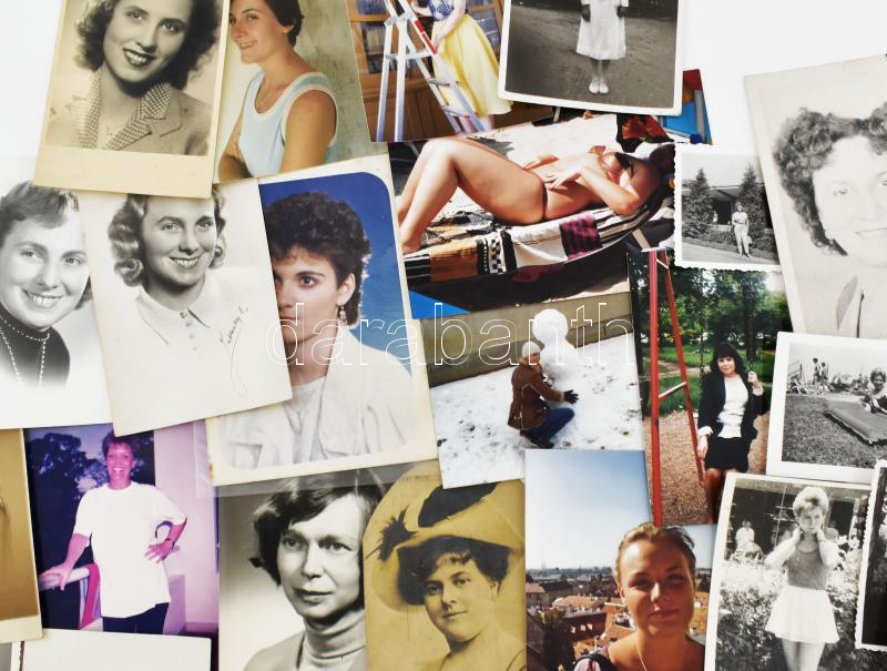 Beschreibung: Hölgyeket, lányokat ábrázoló, vegyes régi és modern fotók, össz. 30 db, vegyes méretben és állapotban