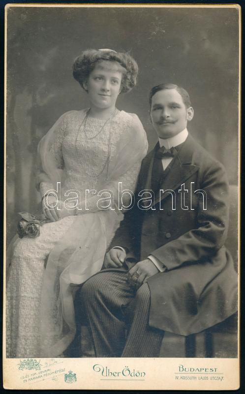 cca 1910 Fiatal pár műtermi portréja, keményhátú fotó Uher Ödön budape... https://www.darabanth.com/de/448-Fernauktion/448.0/Kunst-Dokumente-andere-Sammelgebiete/Foto~2000027/cca-1910-Fiatal-par-mutermi-portreja-kemenyhatu-foto-Uher-Odon-budapesti-mutermebol-21~II2968585