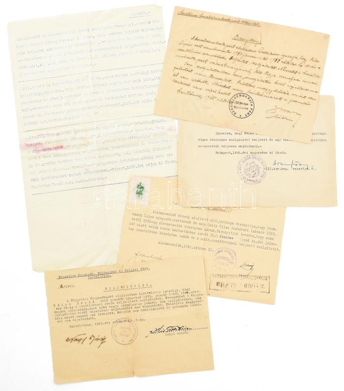 1935-1945 Pálos Árpád csendőrőrmester 5 db irata, különböző igazolások https://www.darabanth.com/de/448-Fernauktion/448.0/Kunst-Dokumente-andere-Sammelgebiete/Historische-Dokumenten-Handschriften~1000032/1935-1945-Palos-Arpad-csendorormester-5-db-irata-kulonbozo-igazolasok~II2969396