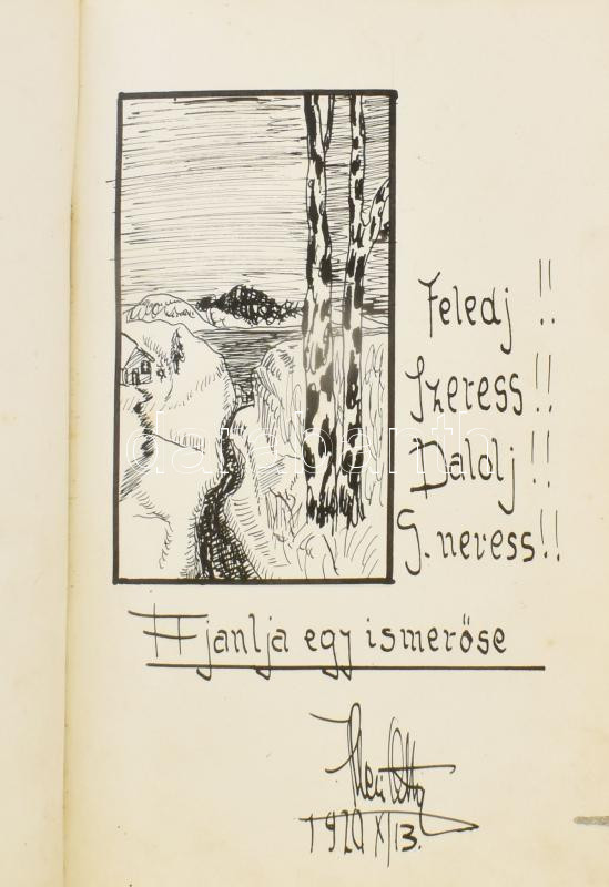 cca 1917-1920 "Emlékül Bözsikének", régi emlékkönyv, bejegyz... https://www.darabanth.com/de/448-Fernauktion/448.0/Kunst-Dokumente-andere-Sammelgebiete/Historische-Dokumenten-Handschriften~1000032/cca-1917-1920-Emlekul-Bozsikenek-regi-emlekkonyv-bejegyzesekkel-rajzokkal-Szecesszios~II2973970