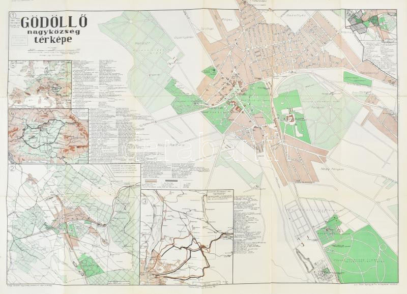 cca 1930-1940 Gödöllő nagyközség térképe, szerk.: vitéz Ortutay Pál és Pápay D., 1 : 11.500, Klösz György és Fia térképészeti műintézet, hátoldalán tárgymutatóval és képes ismertetővel, kis szakadásokkal, 68,5x49,5 cm
