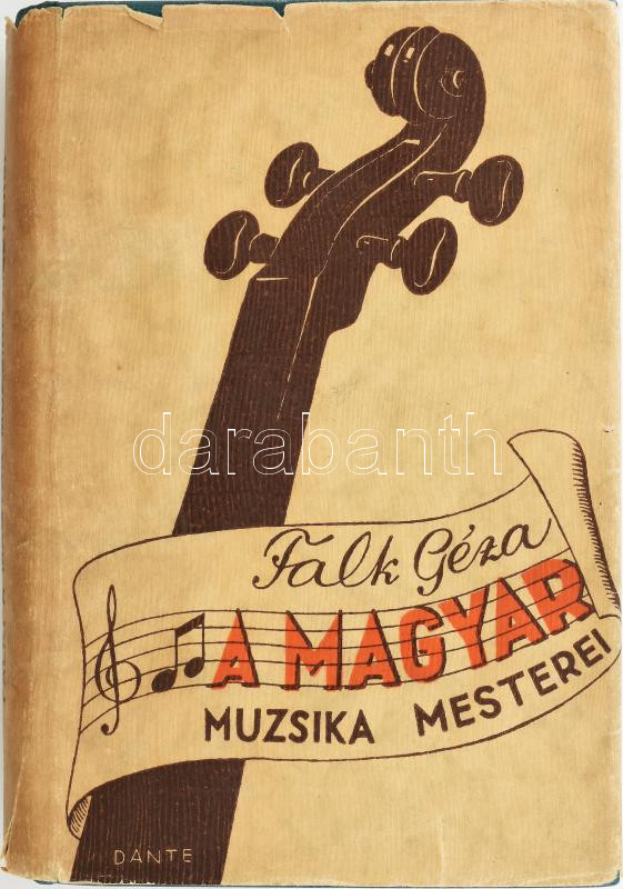 Falk Géza: A magyar muzsika mesterei. Bp., 1937, Dante, 1 t. + 206+(2) p. Első kiadás. Kiadói aranyozott egészvászon-kötés, kissé sérült kiadói papír védőborítóban. A szerző, Falk Géza (1899-1945) által DEDIKÁLT példány.