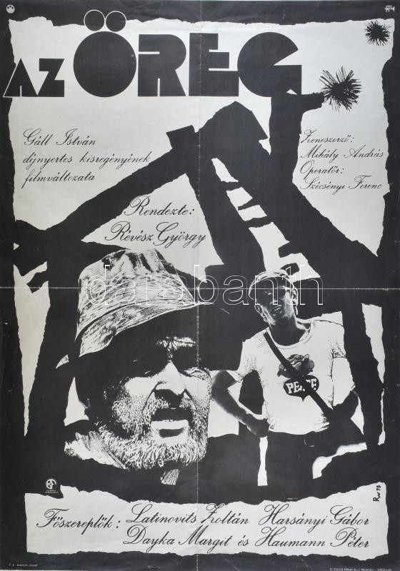 1975 Révész Antal - Wigner Judit: Az öreg (rendezte: Révész György), filmplakát / moziplakát, Bp., Offset és J. Ny., 5800 pld., hajtva, apró lapszéli szakadásokkal, kis gyűrődésekkel, 56x40 cm