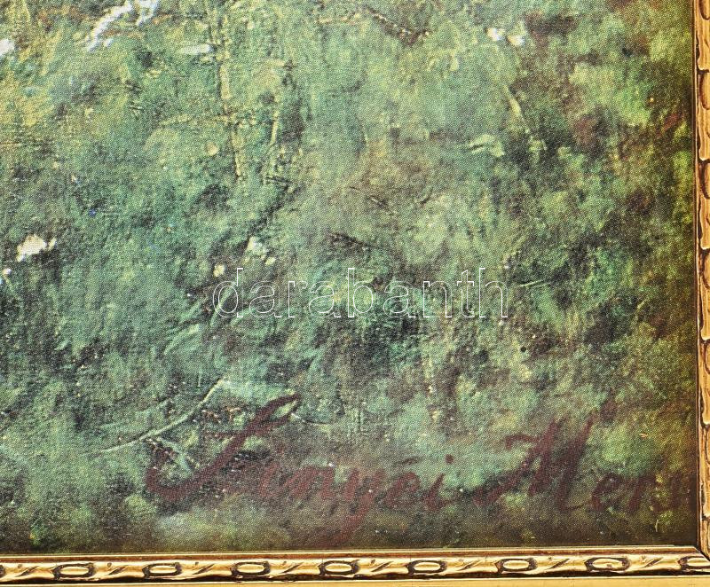 Beschreibung: Nagy méretű aranyozott üvegezett fa keret Színyei Merse nyomattal 70x56 cm