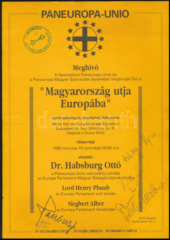 Habsburg Ottó (1912-2011), Habsburg Regina (1925-2010), Habsburg Wallburga (1958-), Habsburg Károly (1961-), Henry Plumb (1925-2022), 1990. évi Paneuropa Unio meghívón