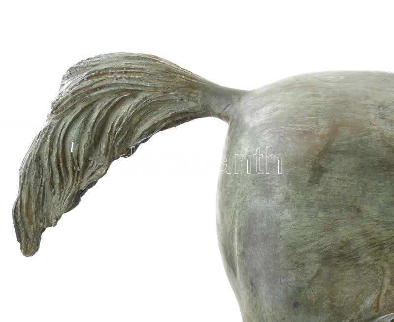 Ismeretlen szobrász: Ló, monumentális öntött bronz szobor, fa talapzaton, hibátlan, egyik talpának illesztése hiányzik, 50x14x62 cm. KIZÁRÓLAG SZEMÉLYES ÁTVÉTEL, NEM POSTÁZZUK! / ONLYPERSONAL COLLECTION AT OUR OFFICE!