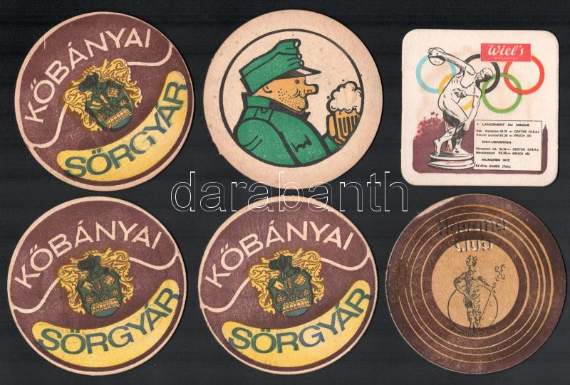 6 db retró söralátét: Kőbányai Sörgyár, Wiel's (Müncheni olimpia)... https://www.darabanth.com/de/448-Fernauktion/448.0/Kunst-Dokumente-andere-Sammelgebiete/Werbungen~1000024/6-db-retro-soralatet-Kobanyai-Sorgyar-Wiels-Muncheni-olimpia-Svejk-Havana-Club-d-9~II2907891