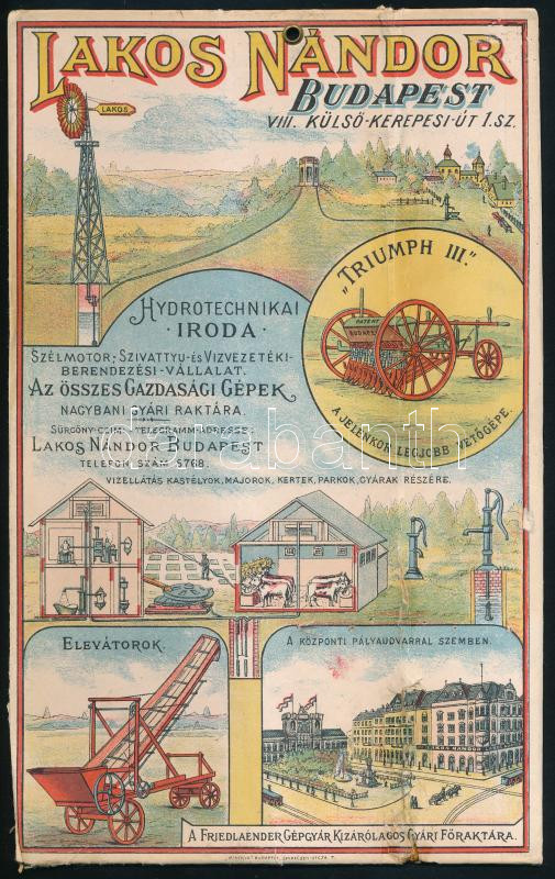 cca 1900 Lakos Nándor Hydrotechnikai iroda. Szélerőmű! és gépészet rek... https://www.darabanth.com/de/448-Fernauktion/448.0/Kunst-Dokumente-andere-Sammelgebiete/Werbungen~1000024/cca-1900-Lakos-Nandor-Hydrotechnikai-iroda-Szeleromu-es-gepeszet-reklam-tabla-Litograf~II2966721