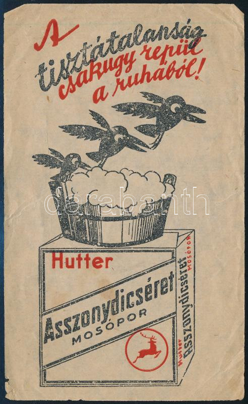 cca 1920 Hutter asszonydicséret mosópor számolócédula https://www.darabanth.com/de/448-Fernauktion/448.0/Kunst-Dokumente-andere-Sammelgebiete/Werbungen~1000024/cca-1920-Hutter-asszonydicseret-mosopor-szamolocedula~II2974180