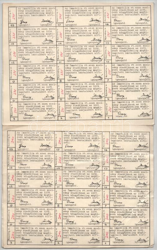 Beschreibung: Budapest 1919. "Az Immobilia Ingatlan Forgalmi Részvénytársaság" részvénye 400K-ról szelvényekkel (3x) T:AU-F