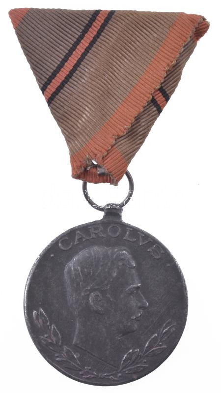 Hungary 1918. "Wound Medal" Zn decoration with 1st time wound ribbon. Sign.: R. Placht C:XF planchet error