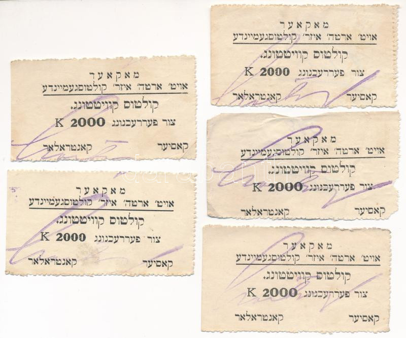 Beschreibung: ~1920-25. A makói izraelita hitközség Gabella díj (hitközségi adó) értékjegye 2000K értékben (5x) T:F