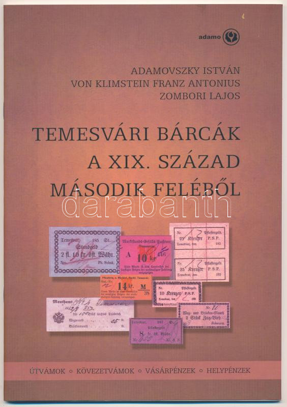 Temesvár ~1850-1880. 18xklf német nyelvű kövezetvámjegy (Pflastergeld) 4kr, 8kr, 10kr, 13kr és 14kr címletekben + 2004-2009. 7xklf sorszámozott emlékjegy a Temesvári Egyházmegyei Levéltár által kiadva + Adamovszky István, Dr. Franz Antonius von Klimstein és Zombori Lajos: Temesvári bárcák a XIX. század második feléből. Budapest, 2009 - új példány, az egyik szerző, Dr. Franz Antonius von Klimstein dedikálásával. A tételben lévő bárcák és emlékjegyek megtalálhatók a katalógusban. T:XF-F,UNC Timisoara ~1850-1880. 18xdiff paving duty ticket in German (Pflastergeld) in denominations of 4 Kreuzer, 8 Kreuzer, 10 Kreuzer, 13 Kreuzer and 14 Kreuzer + 2004-2009. 7xdiff numbered commemorative notes issued by the Diocese Archives of Timisoara + István Adamovszky, Dr. Franz Antonius von Klimstein and Lajos Zombori: Temesvári bárcák a XIX. század második feléből (Timisoara duty tickets and local money in the XIX. from the second half of the century). Budapest, 2009 - new copy, with the dedication of one of the authors, Dr. Franz Antonius von Klimstein. The duty tickets and souvenir notes from the lot can be found in the catalog. T:XF-F,UNC