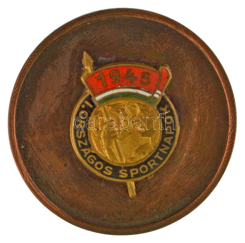 1945. "Országos Sportnapok" zománcozott bronz díjérem (40mm) T:AU https://www.darabanth.com/de/448-Fernauktion/448.0/Numismatik/Sportpreise-und-Sportgedenkmedaillen~500011/1945-Orszagos-Sportnapok-zomancozott-bronz-dijerem-40mm-TAU~II2973585