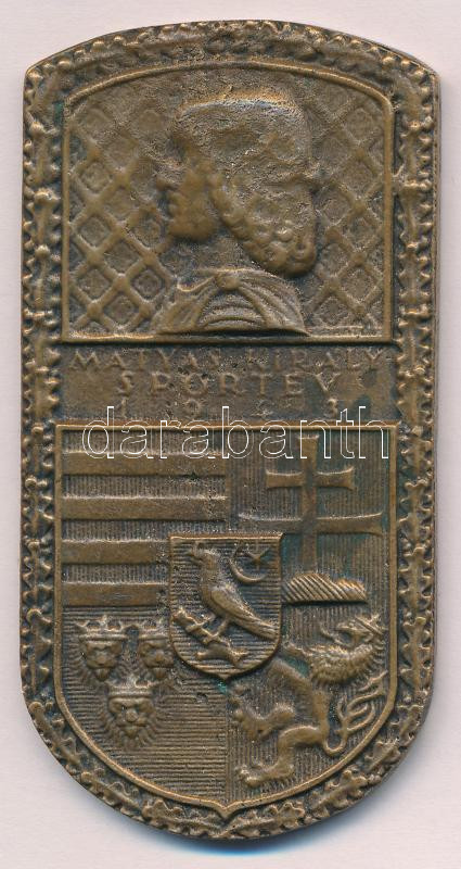 Beschreibung: Arató Gyula (1898-1969) 1943. "Mátyás Király Sportév 1943" öntött bronz plakett (77x39mm) T:VF