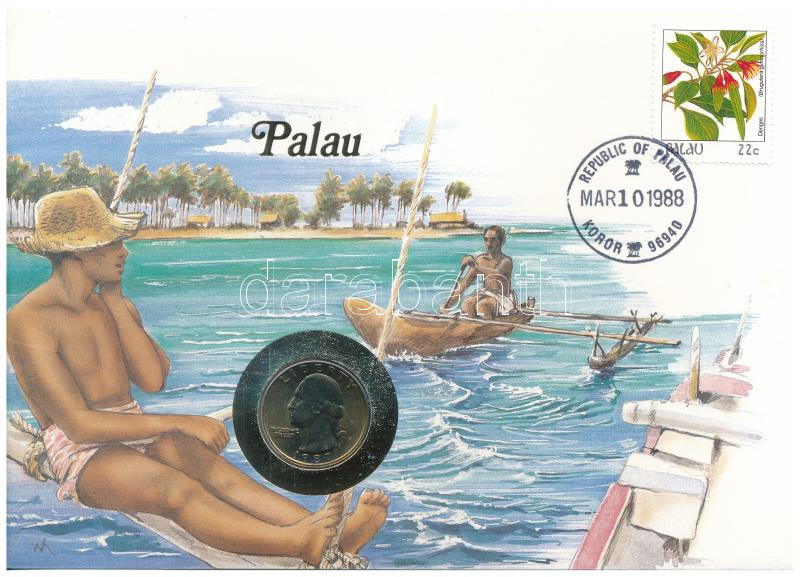 Amerikai Egyesült Államok / Palau 1987. 25c felbélyegzett borítékban, bélyegzéssel, német nyelvű leírással T:UNC USA / Palau 1987. 25 Cents in envelope with stamp and cancellation, with German description C:UNC