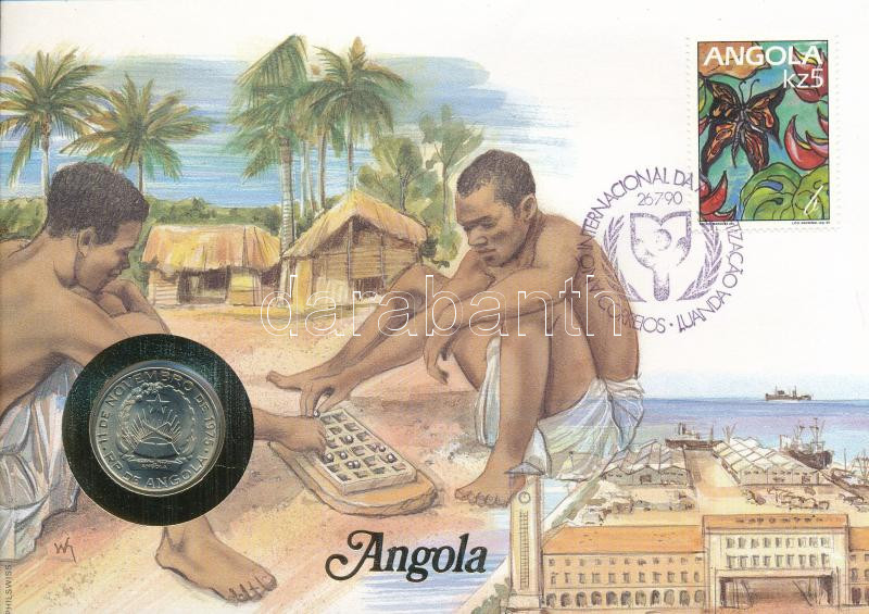 Angola 1975. 5 Kwanza in envelope with stamp and cancellation, with German description C:UNC