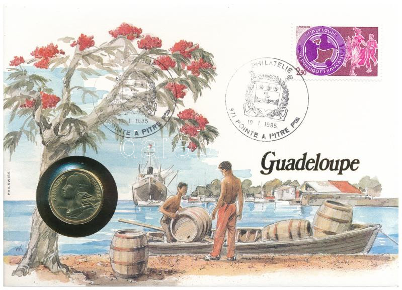 Franciaország / Guadeloupe 1984. 20c felbélyegzett borítékban, bélyegzéssel, német nyelvű tájékoztatóval T:UNC France / Guadeloupe 1984. 20 Centimes in envelope with stamp, cancellation and a prospectus in german C:UNC