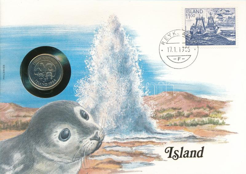 Izland 1984. 5Kr, felbélyegzett borítékban, bélyegzéssel, német nyelvű leírással T:UNC