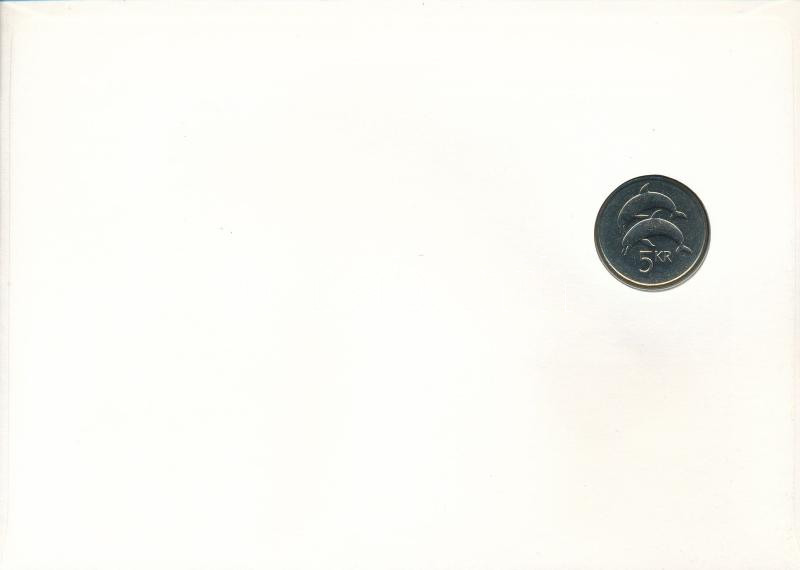 Iceland 1984. 5 Kronur in envelope with stamp and cancellation, with German description C:UNC