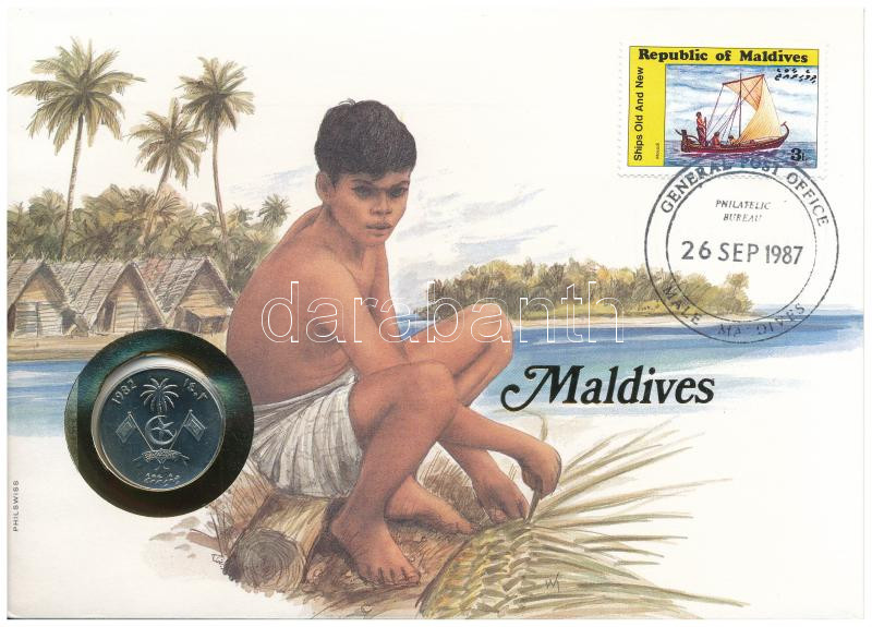 Maldív-szigetek 1982. 1R acél felbélyegzett borítékban, bélyegzéssel, ...
