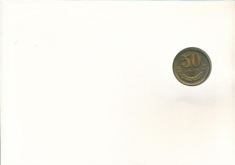 Mongolia 1980. 50 Möngö Cu-Ni in envelope with stamp, cancellation and a prospectus in german C:XF