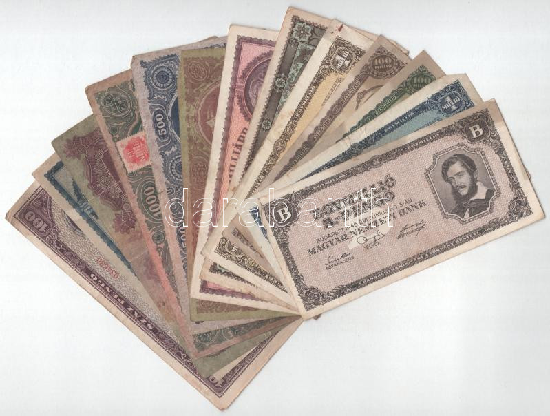 13db-os magyar Pengő bankjegytétel T:F,VG https://www.darabanth.com/de/448-Fernauktion/448.0/Numismatik/Ungarische-Banknoten~500007/13db-os-magyar-Pengo-bankjegytetel-TF-VG~II2976505