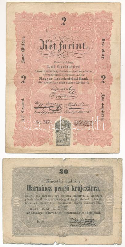 Beschreibung: 1848. 2Ft "Kossuth bankó" + 1849. 30kr "Kossuth Bankó" T:F,VG