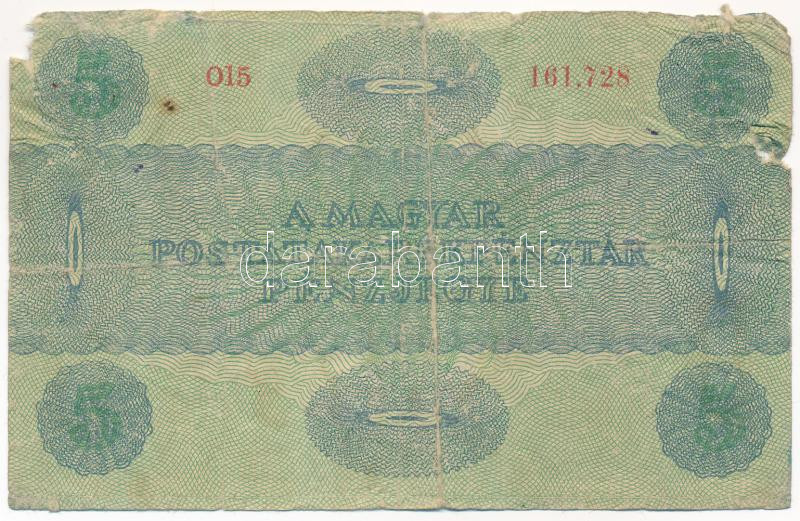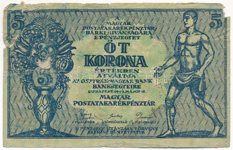Beschreibung: 1919. 5K "OSZTRÁK-MAGYAR BANK BANKJEGYEIRE" T:VG anyaghiány