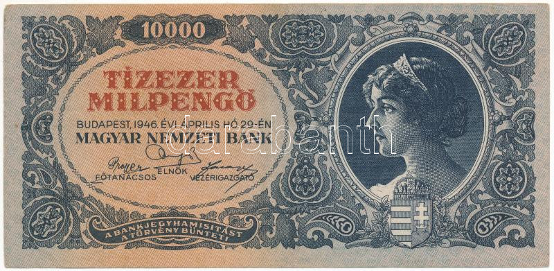 1946. 10.000MP T:III szép papír Adamo P29 https://www.darabanth.com/de/448-Fernauktion/448.0/Numismatik/Ungarische-Banknoten~500007/1946-10000MP-TIII-szep-papir-Adamo-P29~II2967260
