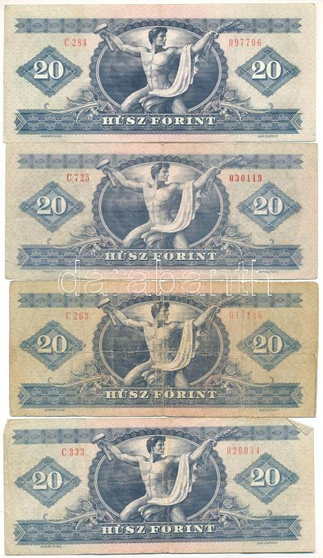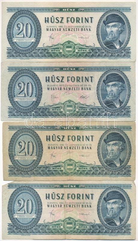 1975. 20Ft + 1980. 20Ft (3x) T:F,VG https://www.darabanth.com/de/448-Fernauktion/448.0/Numismatik/Ungarische-Banknoten~500007/1975-20Ft-plus-1980-20Ft-3x-TF-VG~II2974020