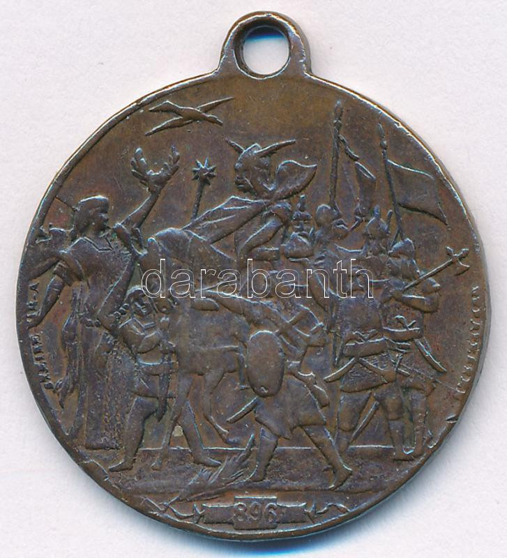 1896. "Ezredéves Történetünk Ezredekre Remény Nekünk - Honfoglalás" millenniumi bronz emlékérem füllel. Szign.: Steiner A. (32,5mm) T:F ph.
