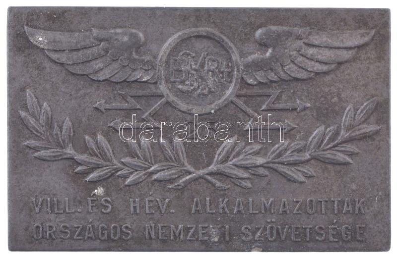 Beschreibung: ~1940. "BSZKRT - Villamos és HÉV Alkalmazottak Országos Nemzeti Szövetsége" fém emlékplakett csavaros hátlappal rögzítőcsavarok nélkül (68x44mm) T:XF