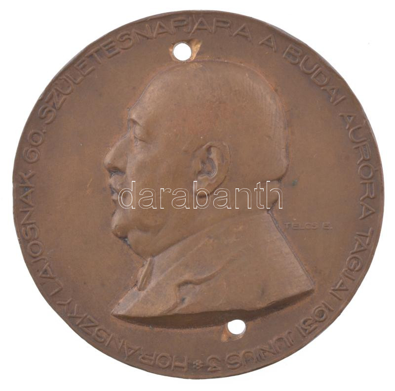 Telcs Ede (1872-1948) 1931. "Horánszky Lajosnak 60. születésnapjára a Budai Auróra tagjai 1931. június 3." egyoldalas bronz emlékérem (55mm) T:VF lyukasztott