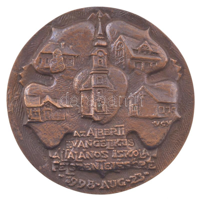 Várhelyi György (1942-) 1998. "Az Alberti Evangélikus Általános Iskola felszentelésére" kétoldalas bronz emlékérem (91mm) T:AU kis patina