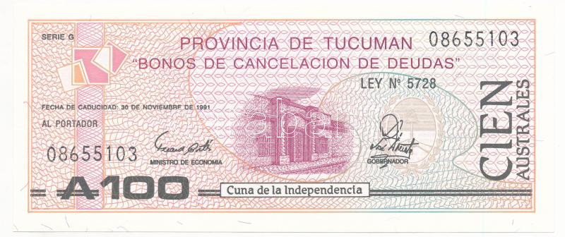 Argentína / Tucuman DN (1989.) 100A helyi bankjegy T:UNC