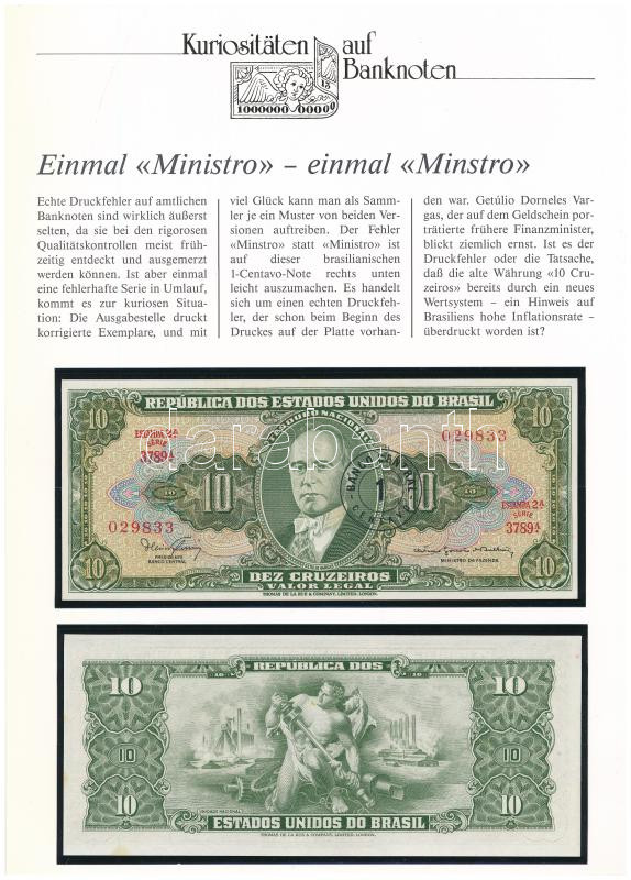 Brazília 1967. 10C "1 CENTAVO" felülbélyegzéssel (2x) német nyelvű leírással T:UNC