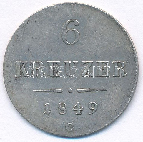 Austria 1849C 6 Kreuzer Ag C:XF,... https://www.darabanth.com/de/448-Fernauktion/448.0/Numismatik/Weltweit-Munzen~500014/Ausztria-1849C-6kr-Ag-TXF-VF-patina-Austria-1849C-6-Kreuzer-Ag-CXF-VF-patina-Krause-KM232200~II2968446