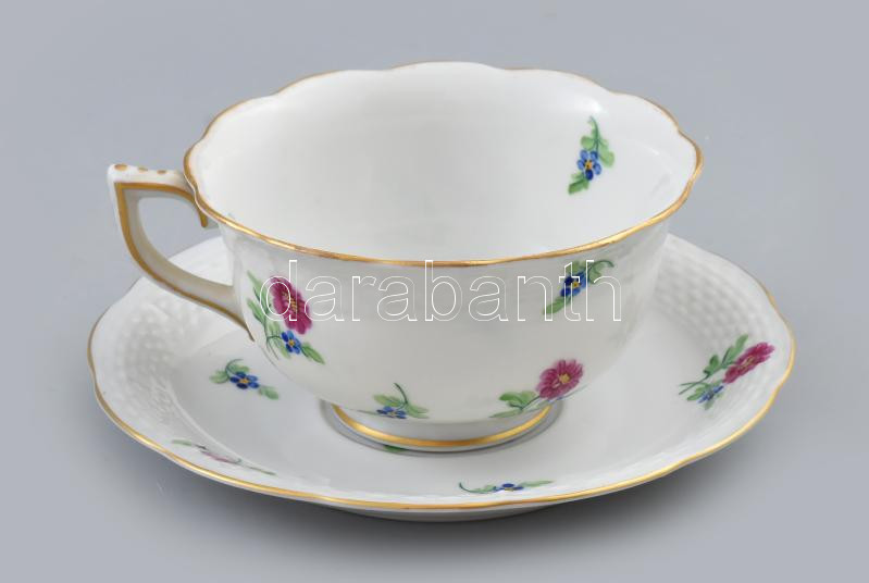 Beschreibung: Herendi virágmintás csésze alátéttel, alátét d: 15,5 cm, csésze m: 6 cm. Jelzéssel, hibátlan.